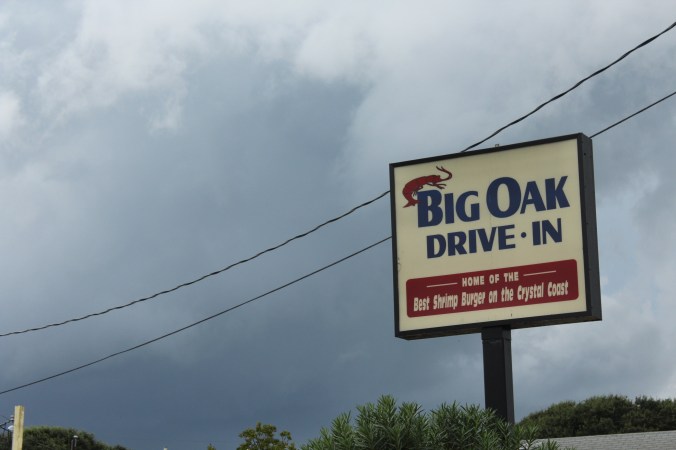 Big Oak Drive-In and Bar-B-Q is an institution for folks who visit the Atlantic Beach area and make the short drive to Salter Path. Its a bit of an unassuming building just off the main road dissecting Bogue Banks but routinely has long lines and a crowded parking lot. Even a downpour didn’t deter folks from queuing up to order from the takeout window. They simply started to bring umbrellas or rain jackets with them and braved the elements.