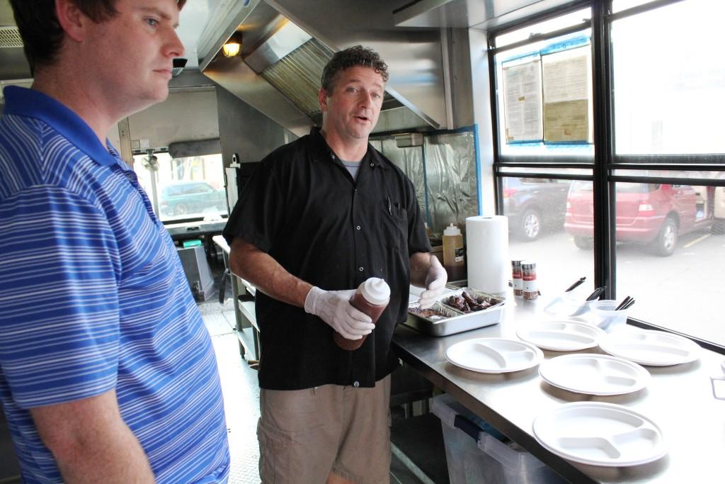 Boone talking about his barbecue in his food truck