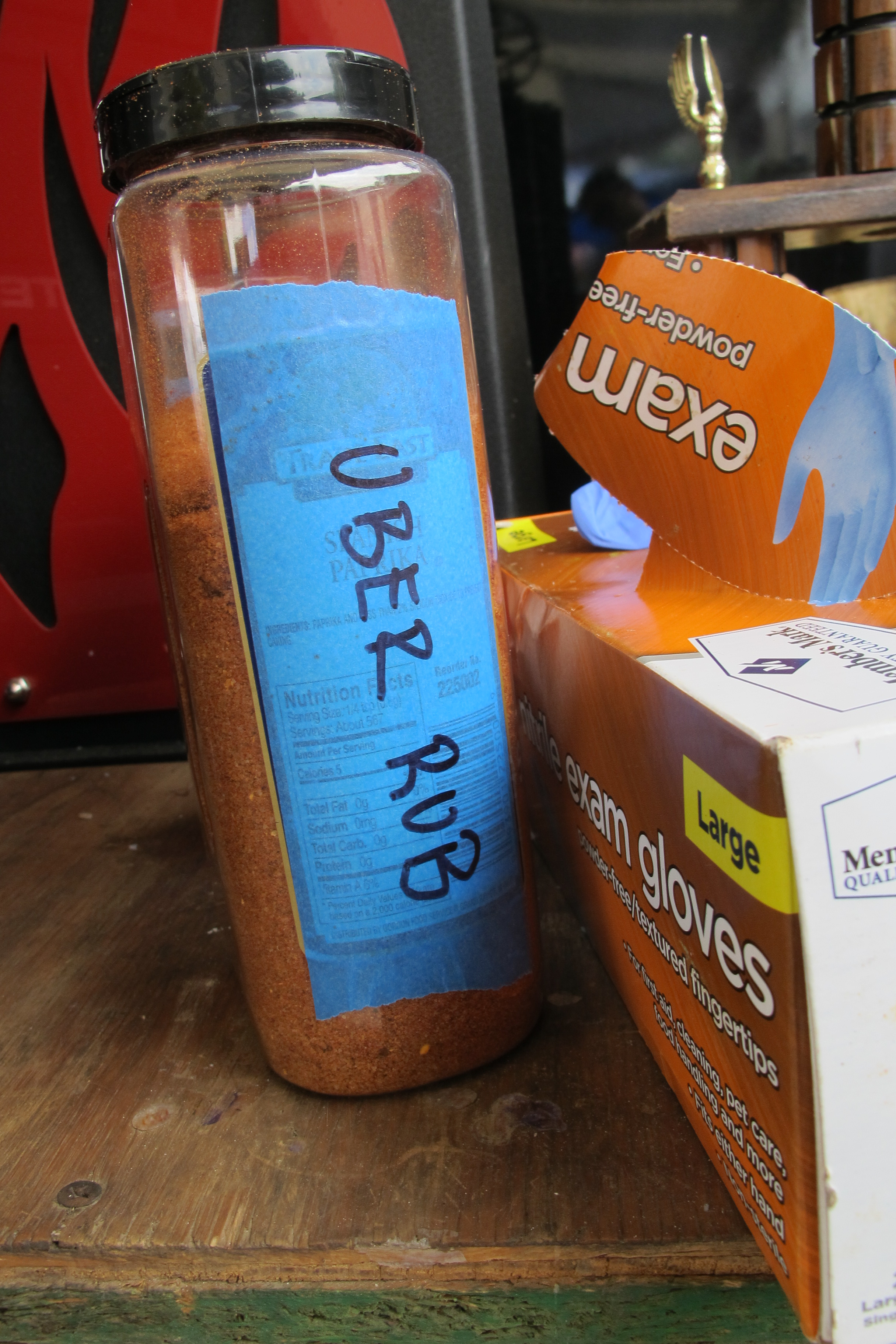 For whole hog, blind box turn-ins are at 12pm noon on Saturday and the judges start coming by at 12:15. Around 11 some of the team starts building the blind box…