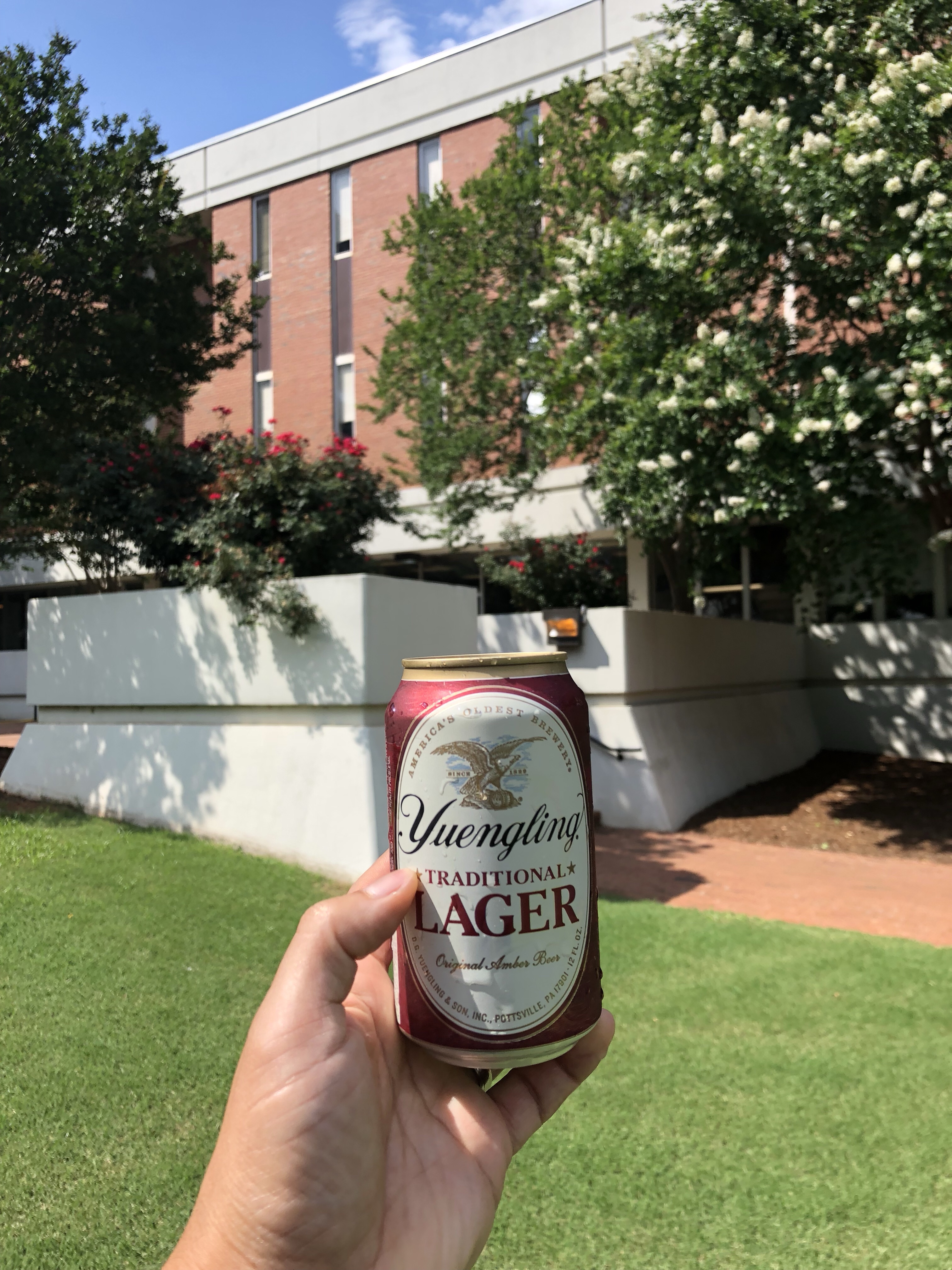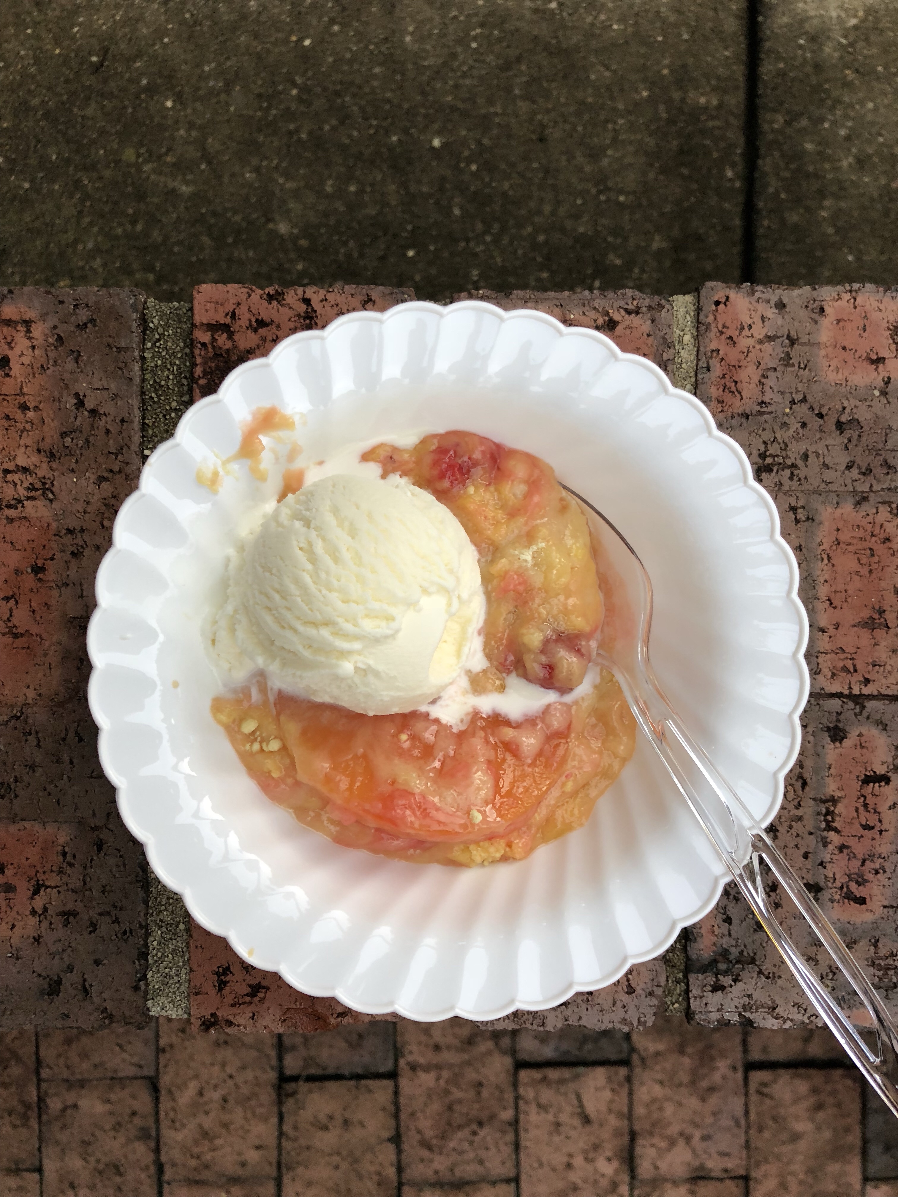 And to my surprise, the two beers on tap were both beers made on campus. And a sour at that! Predictably, the sour was not for everyone and most campers went for the Wolfpack Pilsner. Oh well – more sour for me. Soon enough, it was time for the pig pickin’ and a huge 200 lb porker that had been smoked offsite more than ably fed all of the 30 or so campers plus the 10-15 or so guests. Being in this part of the state, it was of course served eastern style with a vinegar sauce and white slaw. And it tasted amazing. Finally, for dessert peach cobbler with Howling Cow (the ice cream made on campus) capped off the meal perfectly.
